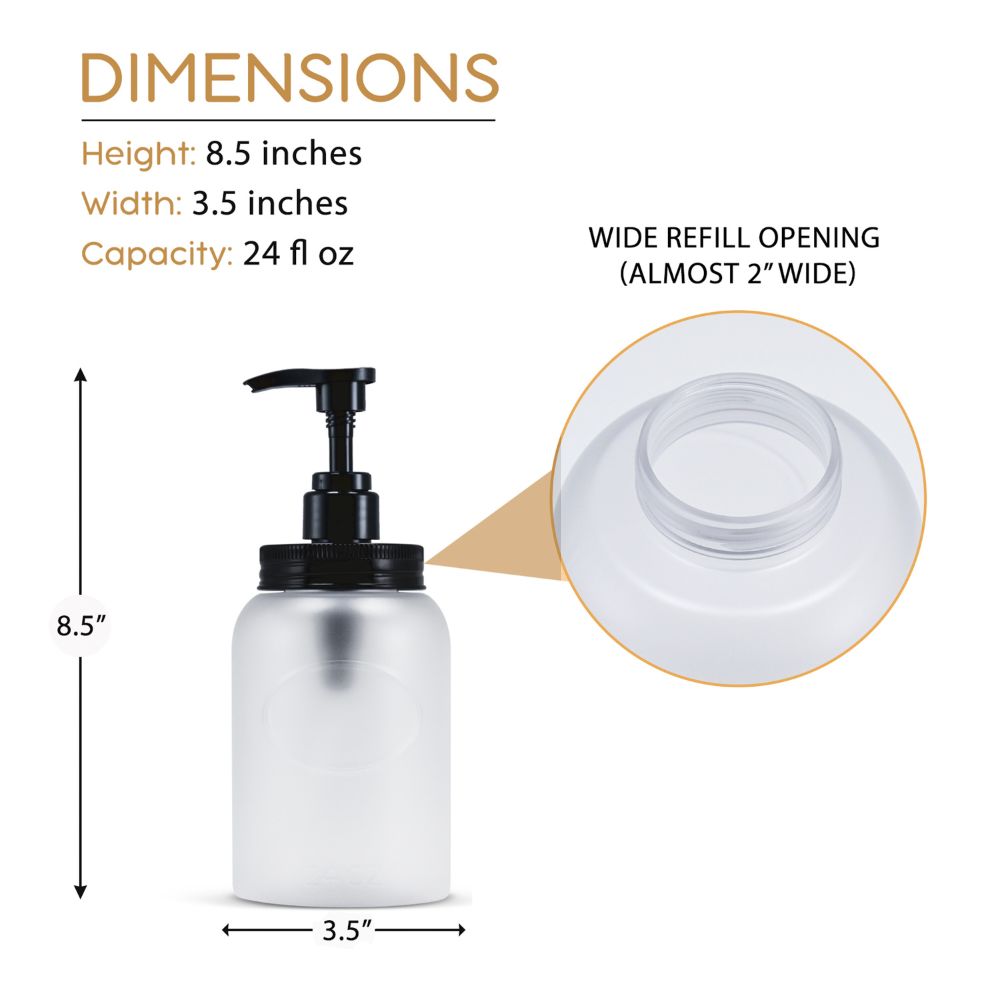 Bottiful Home's 24 oz Plastic Refillable Wide Mouth Jar-Style Pump Bottle Dispenser Set of 4 is a versatile and efficient way to store and dispense your household liquids. It provides a practical and sustainable solution that is both eco-friendly and elegant. Order yours today and simplify your life!